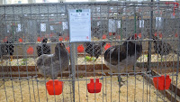 In Schau-Volieren gleich nebenan waren Fasane und meine Strupphühner zu sehen (dieses Jahr noch außer Konkurrenz, also Bewertung ausgestellt).